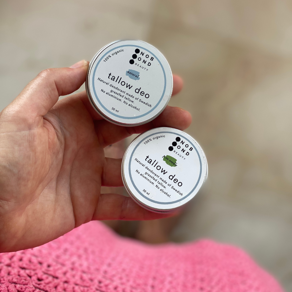 Contents: Swedish tallow from grass-fed animals, Organic cold-pressed virgin olive oil, Organic lavender essential oil
